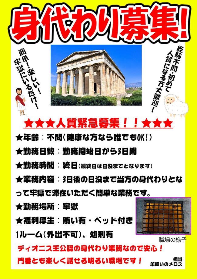 「ではこれよりメロスの処刑を行う!」